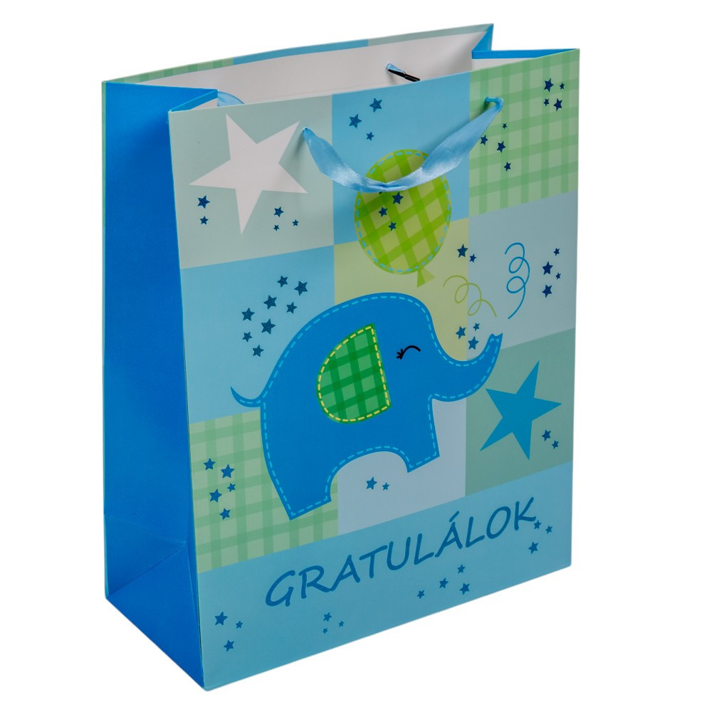 Ajándék tasak gratulálok kék elefánt 26x32cm