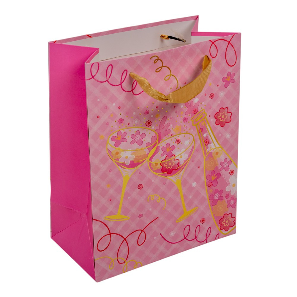 Ajándék tasak pezsgő mintával rózsaszín 18x23cm
