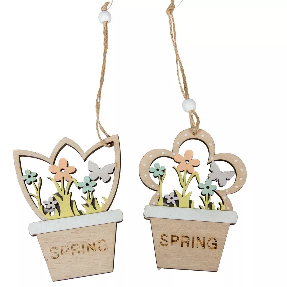 Akasztós áttört virágcserépmintás fa dísz 11cm