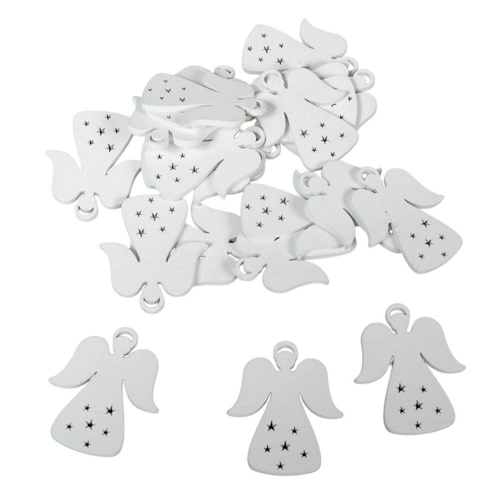 Angyal glóriával fehér fa 5cm 20db-os