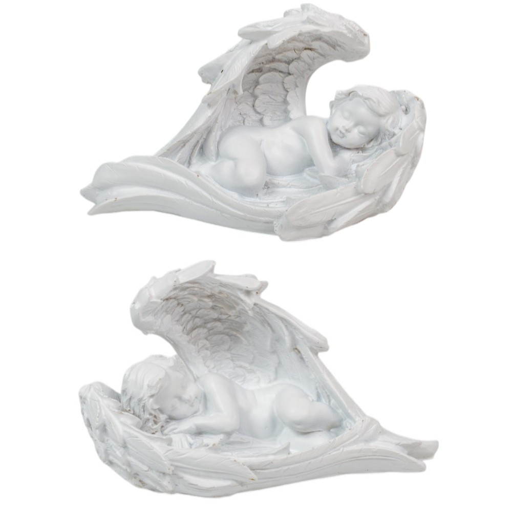 Angyal szárnyon fekvő poly fehér M9x13cm