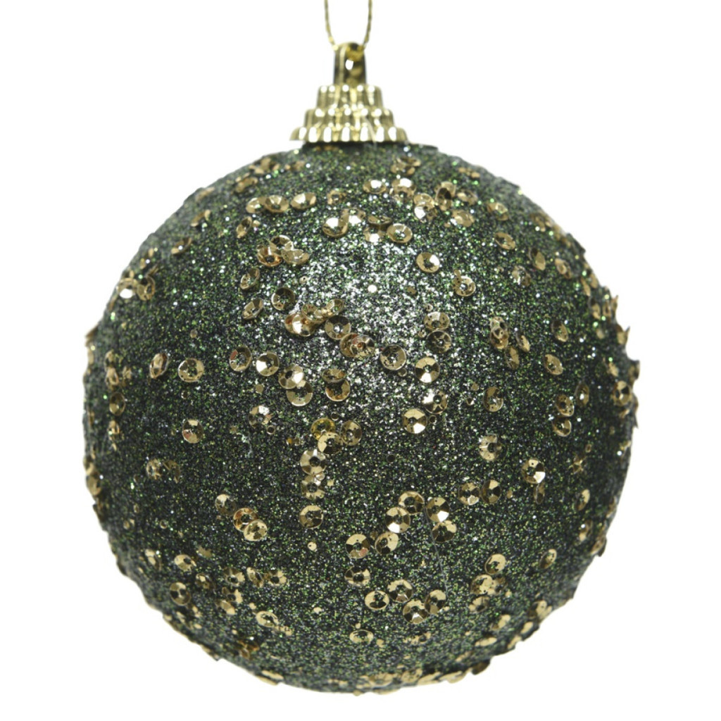 Arany flitteres gömb fenyő zöld 8cm