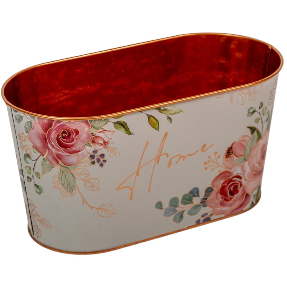 Bádog kaspó ovál rózsás M12x23cm