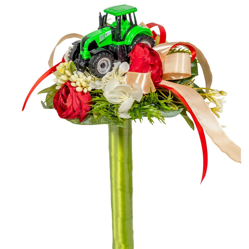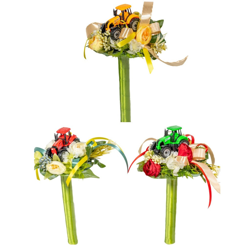 Ballagói csokor traktorral, selyemvirággal 29cm