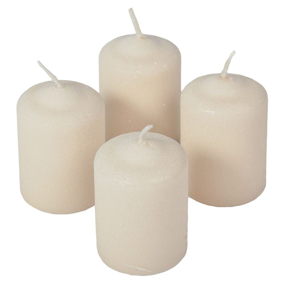Bársony glitter henger gyertya 50x75mm ivory 4db/csom (db ár)