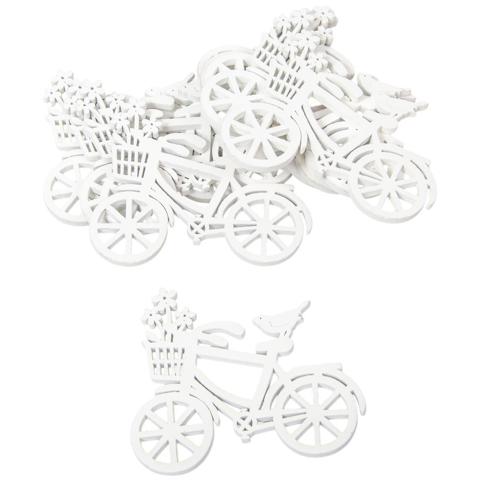 Bicikli virágos kosárral fa fehér 10cm 10db-os