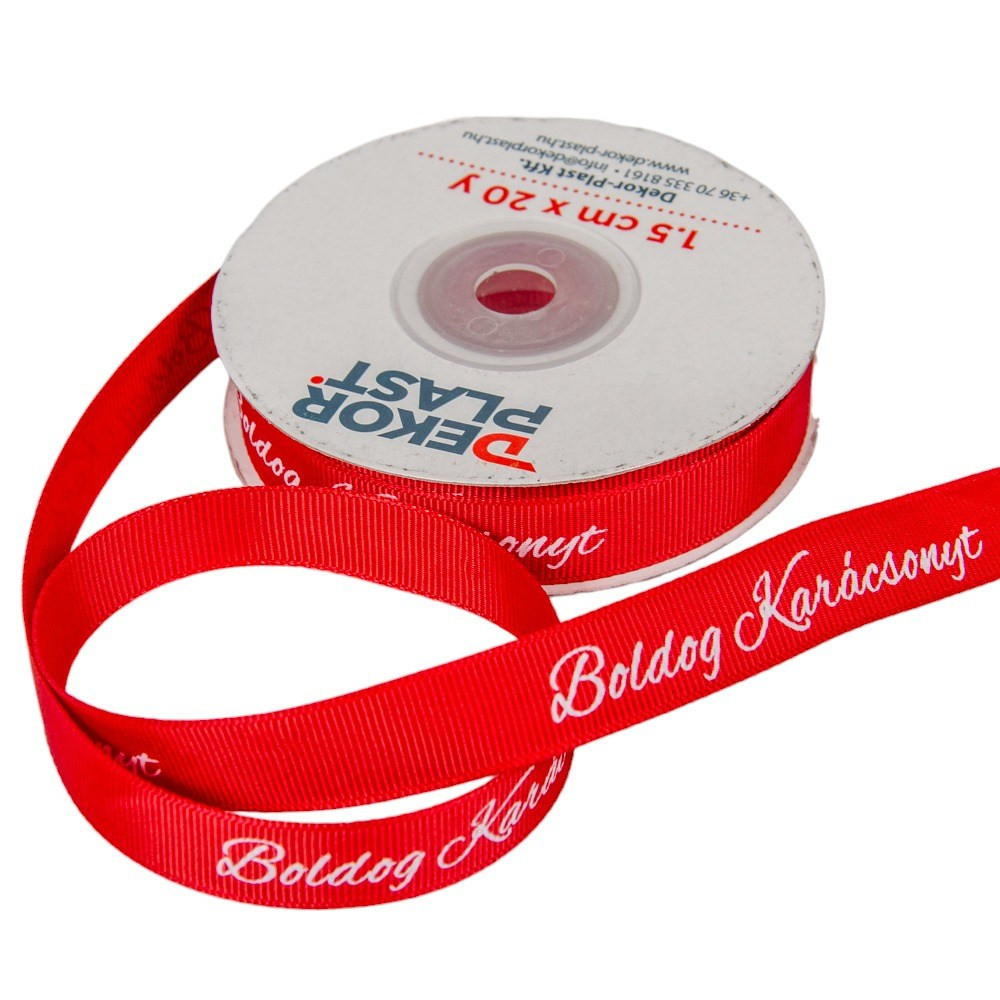 Boldog Karácsonyt feliratos ripsz szalag bordó 1,5cmx20y