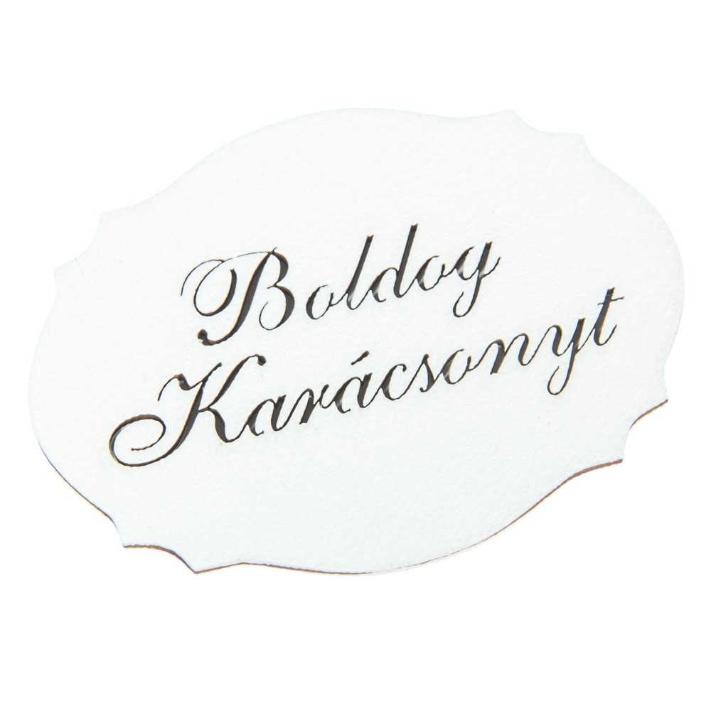 Boldog Karácsonyt feliratú fodros tábla fa fehér 10cm
