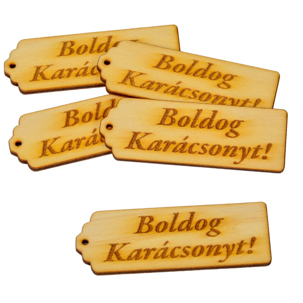 Boldog Karácsonyt feliratú tábla natúr fa 8cm 5db-os