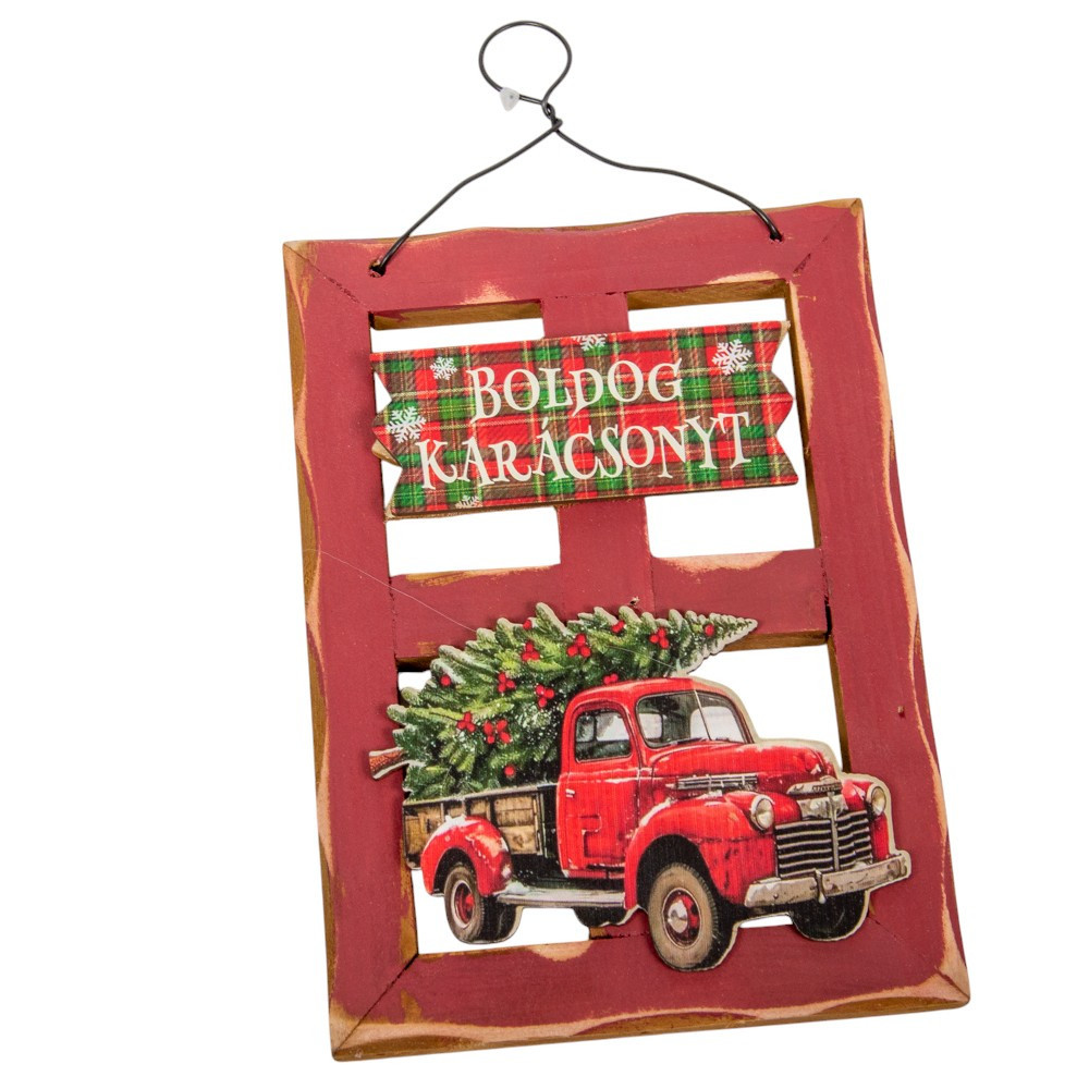 Boldog karácsonyt ablakkeret dísz Kocsi fenyővel 15cm