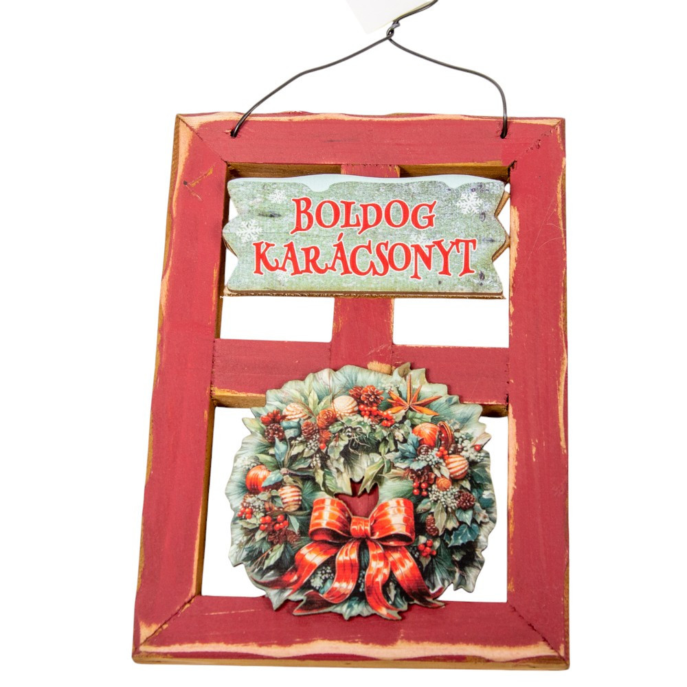 Boldog karácsonyt ablakkeret dísz koszorúval 15cm