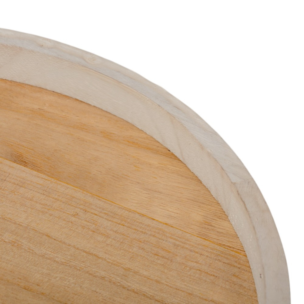 Fa tálca kerek peremes fehér-natúr D35cm
