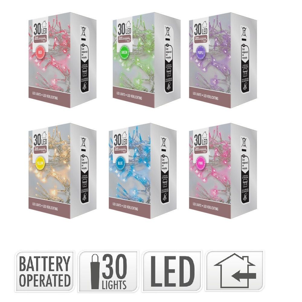 Fényfüzér 30 LED-es elemes (elem nélkül) vegyes színben