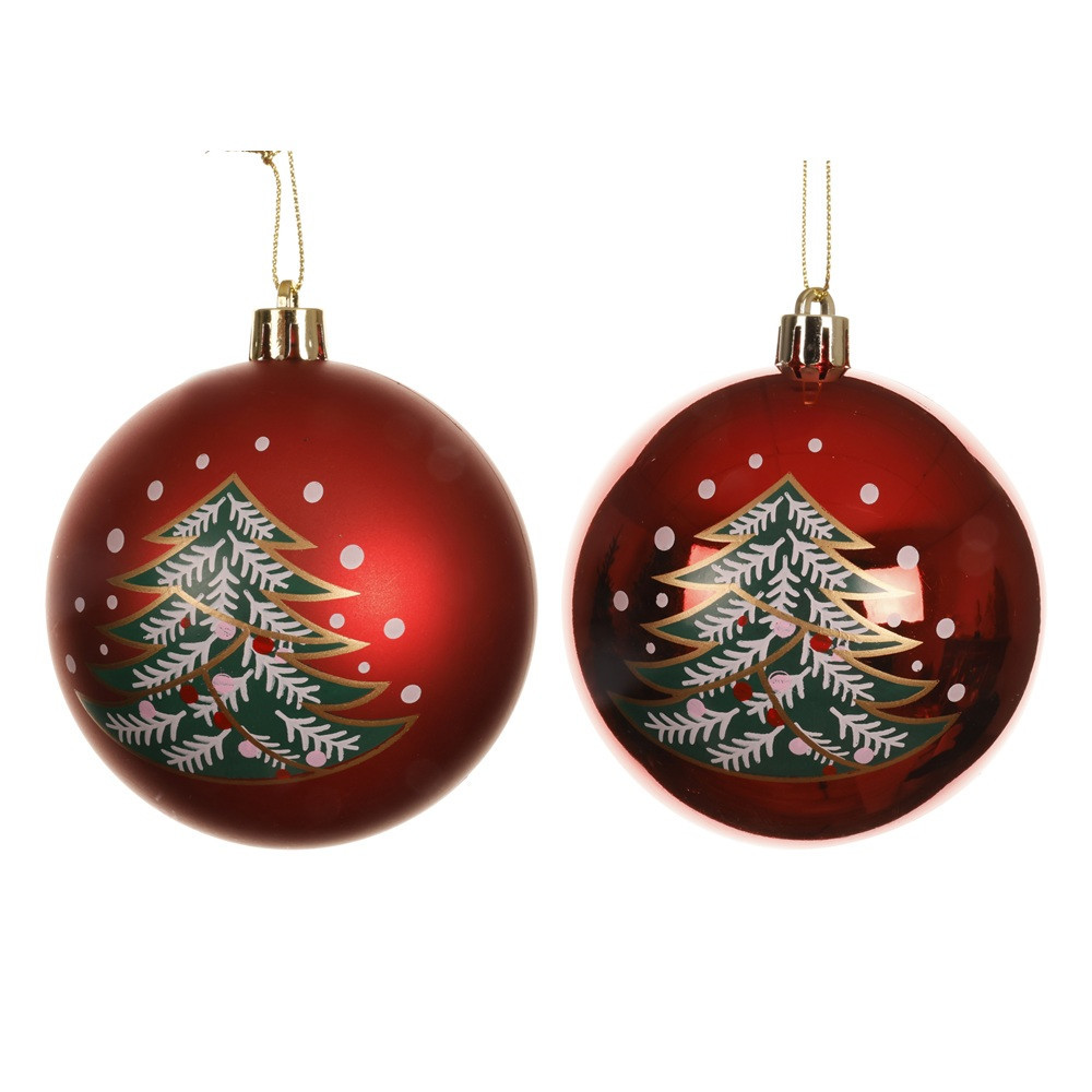 Fenyő mintás műanyag gömb karácsony piros 8cm