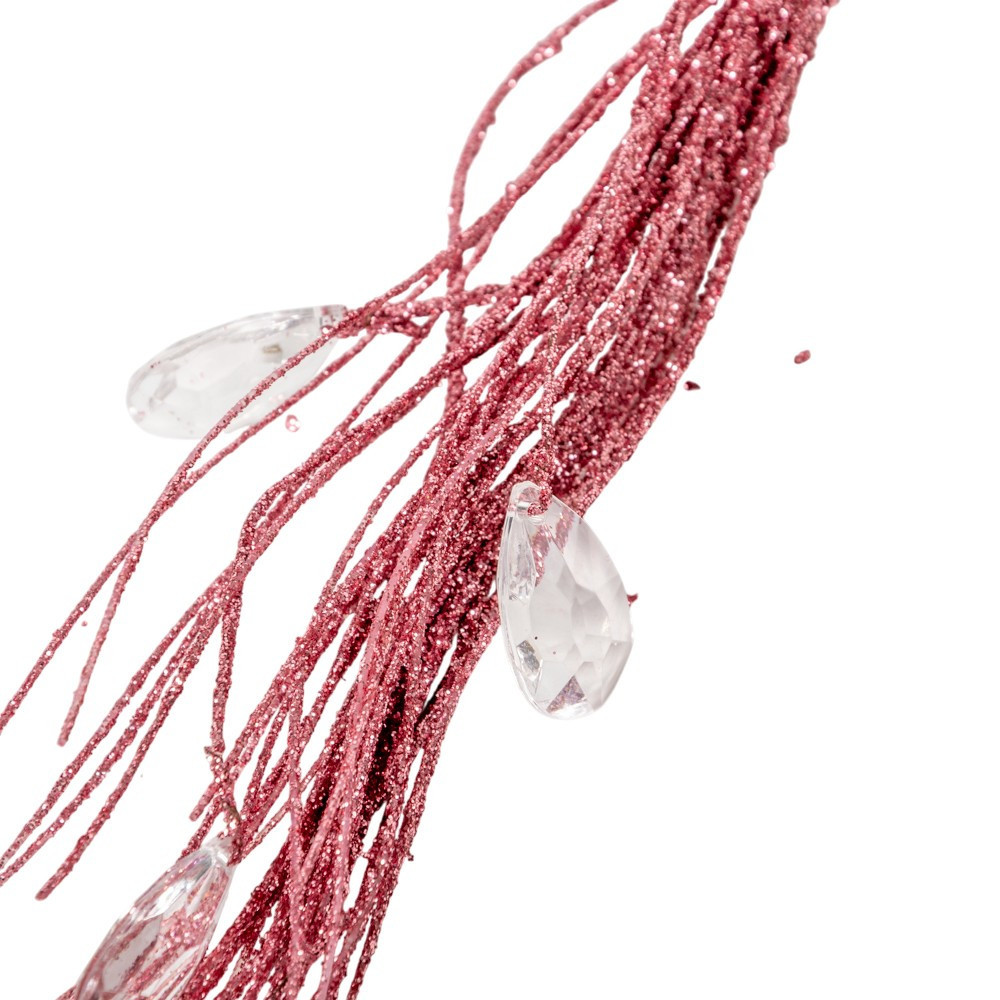 Glitteres dekor ág sztrasszal pink 44cm