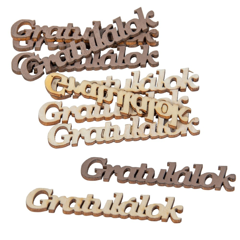 Gratulálok felirat fa barna-fehér 6cm 10db-os