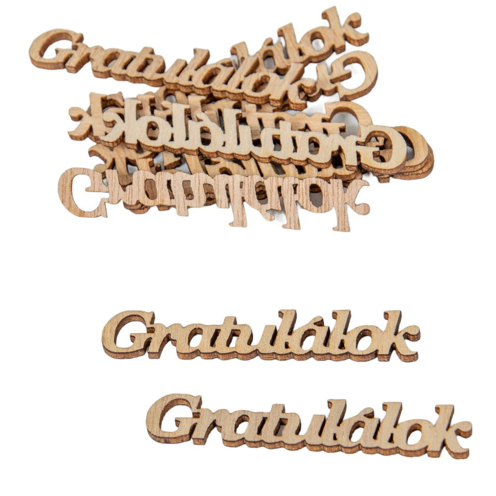 Gratulálok felirat fa natúr 6cm 10 db-os