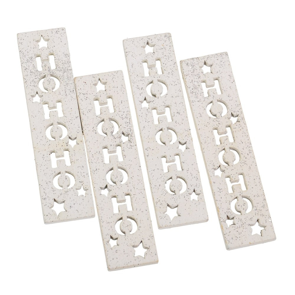 HOHOHO feliratos biléta ezüst glitteres fehér 8cm 4db-os