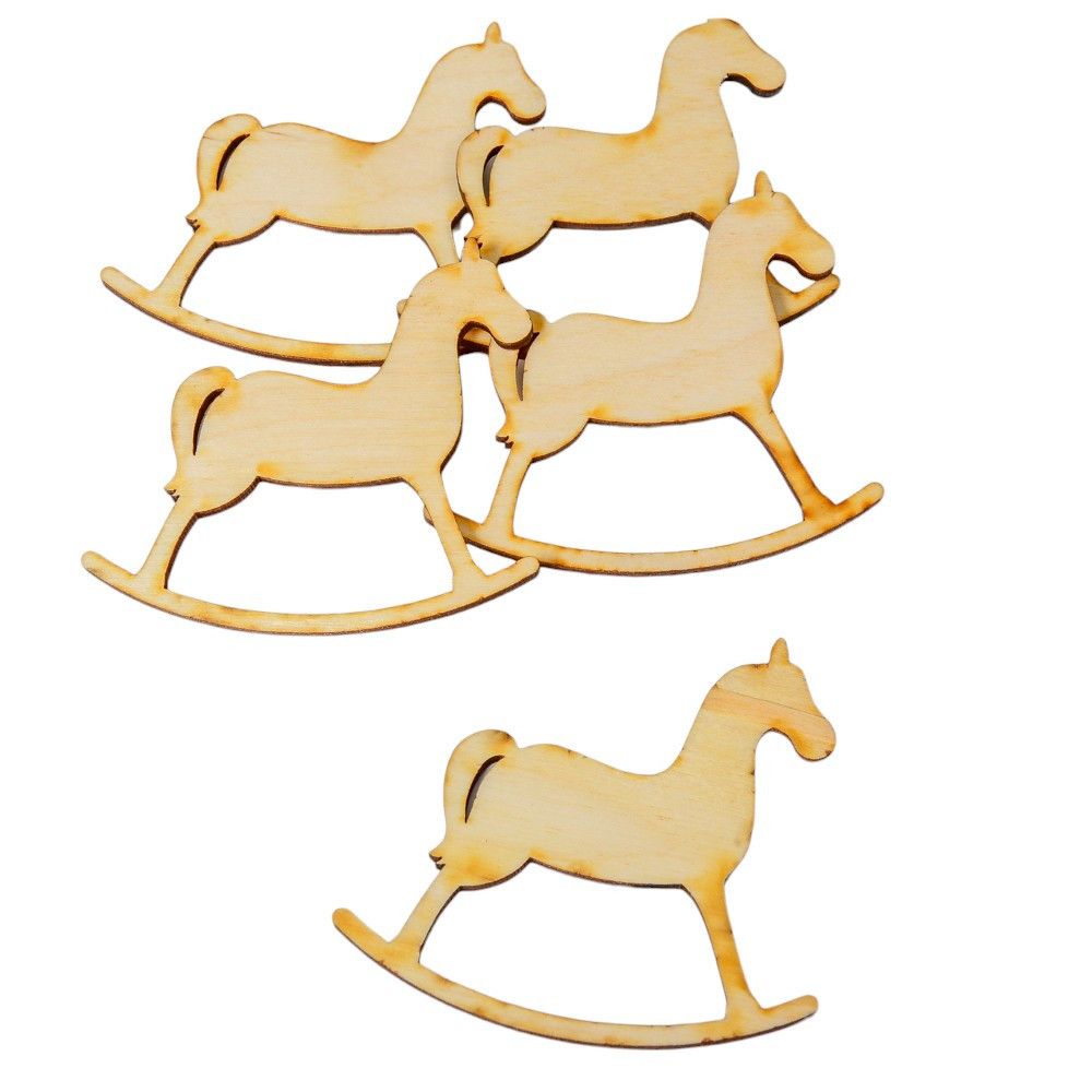 Hintaló gravírozott natúr fa 8cm 5db-os