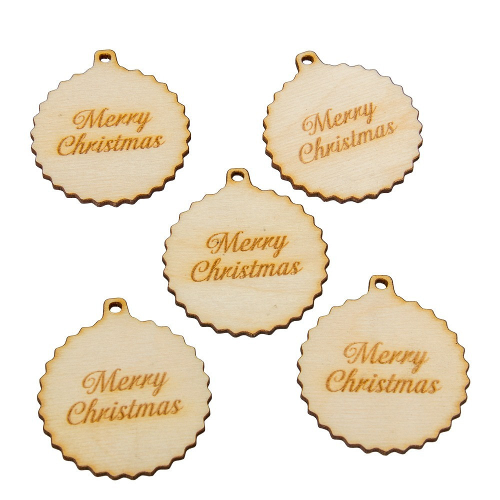 MERRY CRISTMAS fodros gömb natúr fa 5cm 5db-os