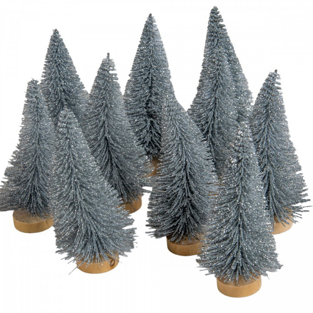 Mini fenyő ezüst glitteres 10cm 10db-os