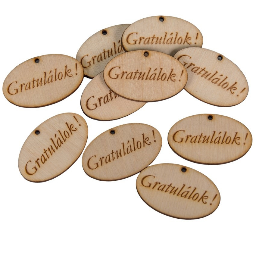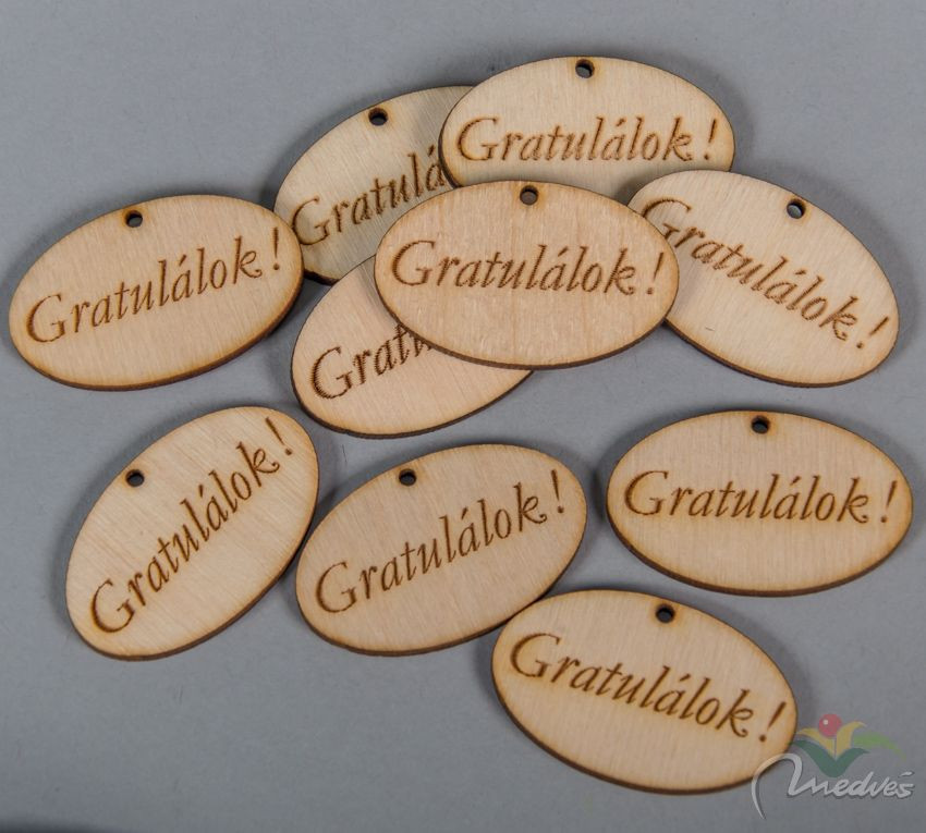 Natúr fa Gratulálok ovál tábla 4cm 10db-os