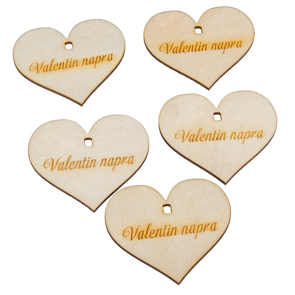 Natúr fa szív Valentin napra felirattal 7cm 5db-os