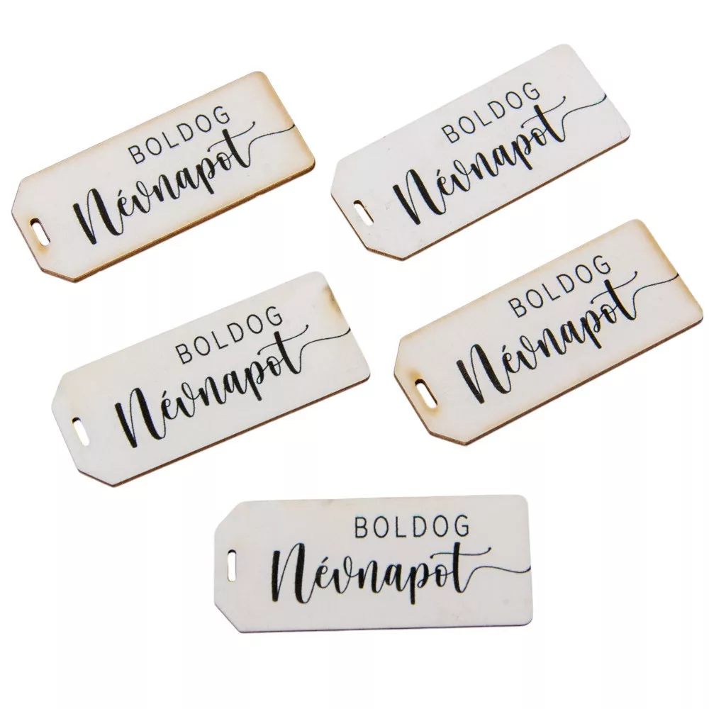 Nyomtatott dekorkarton Boldog névnapot tábla 5,5cm 5db-os