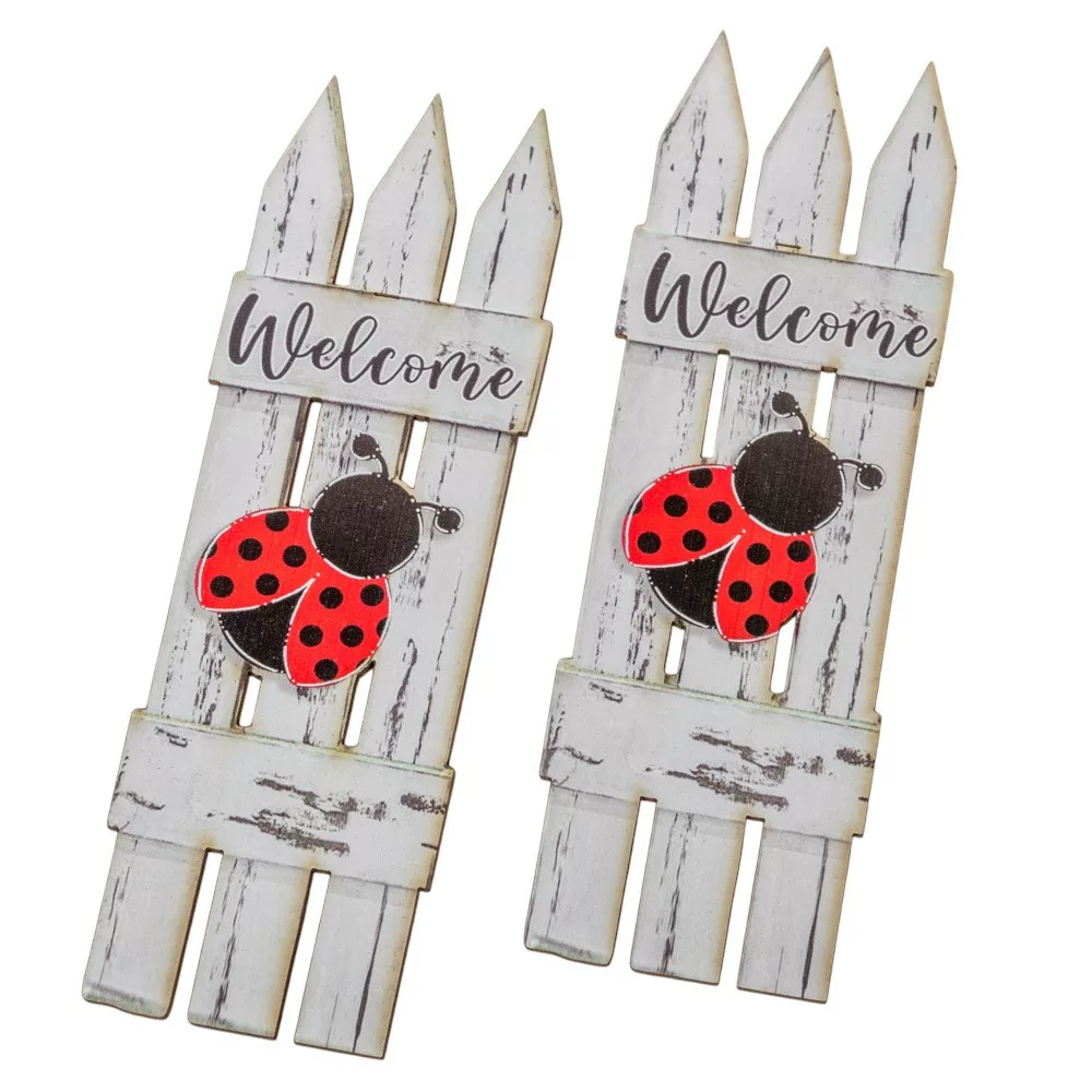 Nyomtatott dekorkarton Fehér kerítés katicával 15cm 2db-os