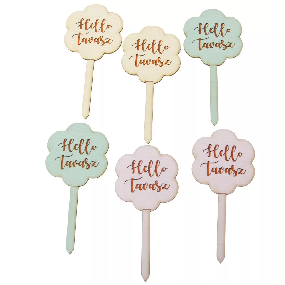 Nyomtatott dekorkarton Hello tavasz beszúrós táblák mix 10cm 6db-os