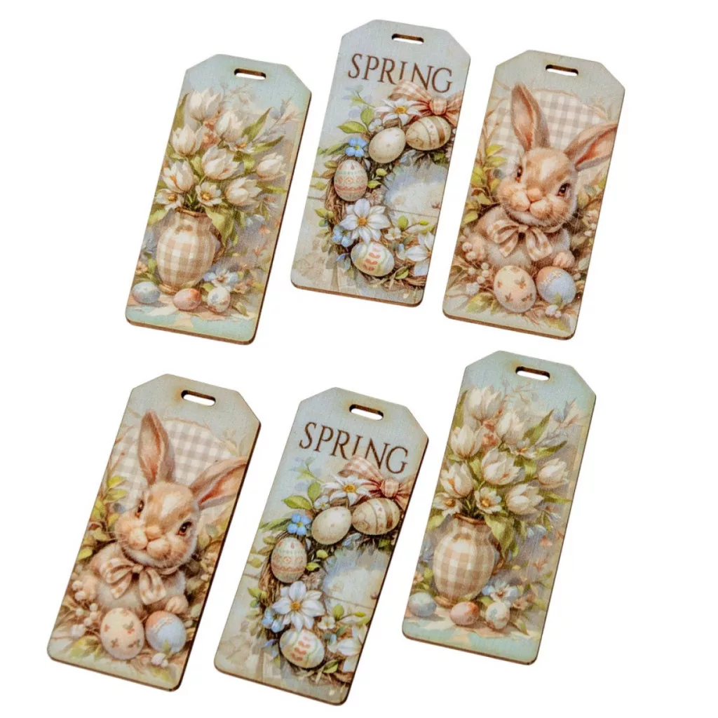 Nyomtatott dekorkarton Húsvéti pasztell téma biléta 5,5cm 6db-os