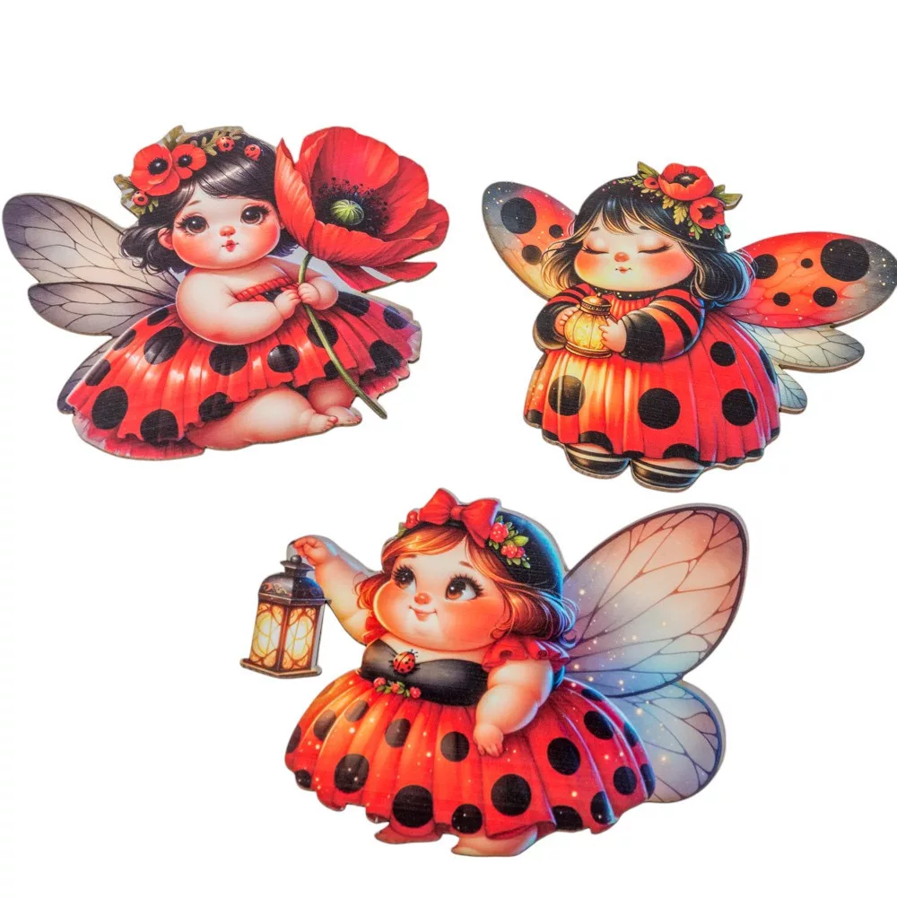 Nyomtatott dekorkarton Katica tündér 10cm 3db-os