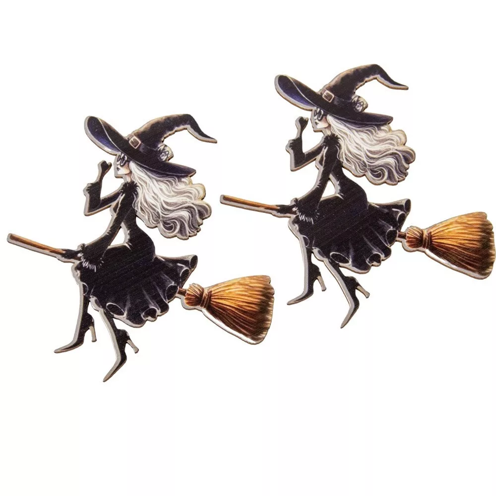 Nyomtatott dekorkarton boszilány seprűn 13cm 2db-os