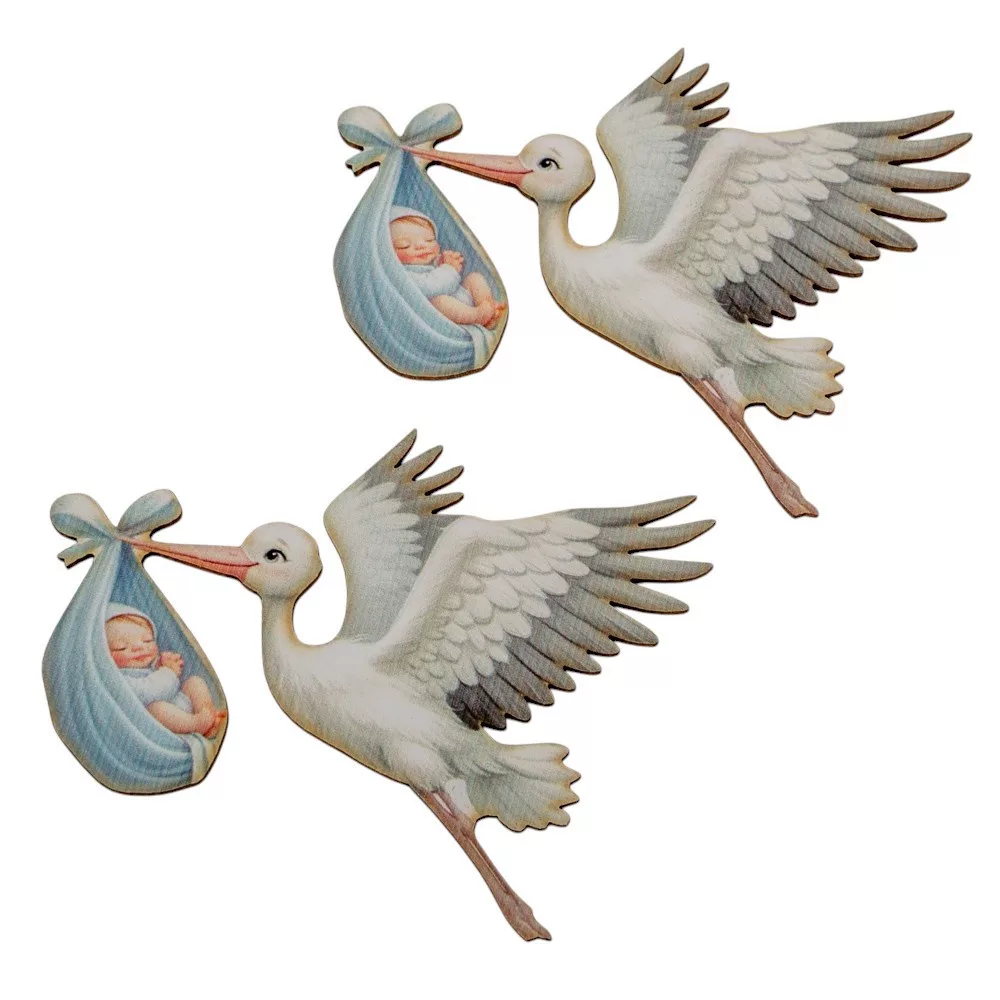 Nyomtatott dekorkarton gólya babával kék 10cm 2db-os