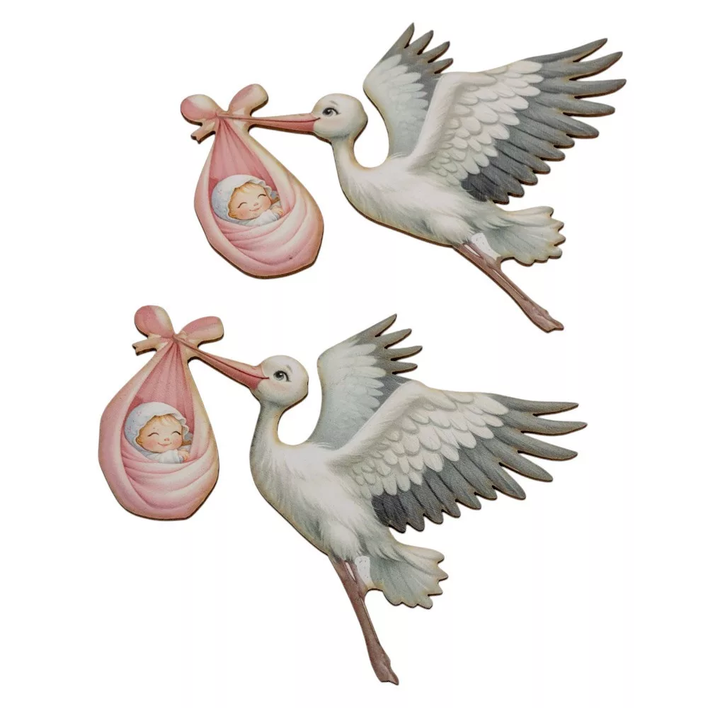 Nyomtatott dekorkarton gólya babával rózsaszín 10cm 2db-os