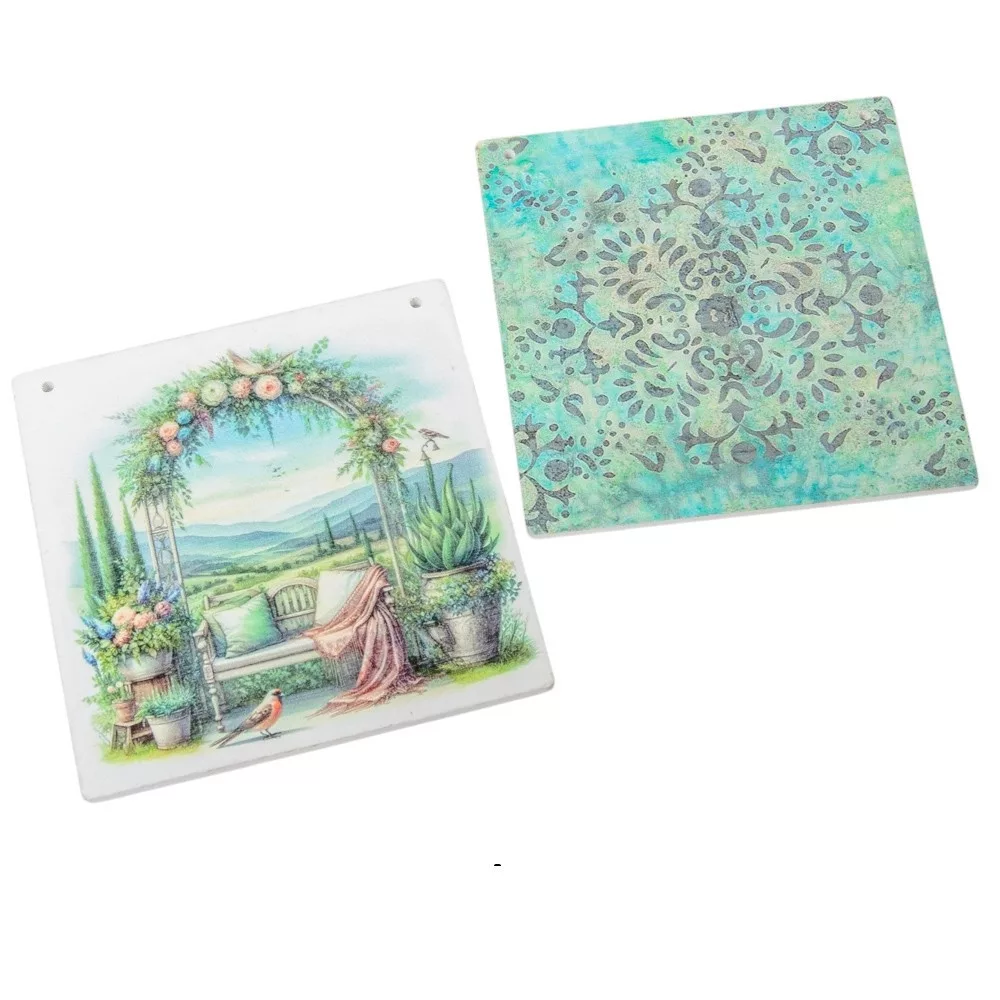 Nyomtatott fa tábla Mediterrán csempe minta - Toscana türkiz 12,5cm 2db-os