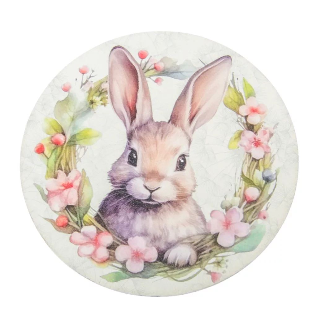 Nyomtatott fa tábla koszorú közép Nyuszi fejes koszorú 14,8cm
