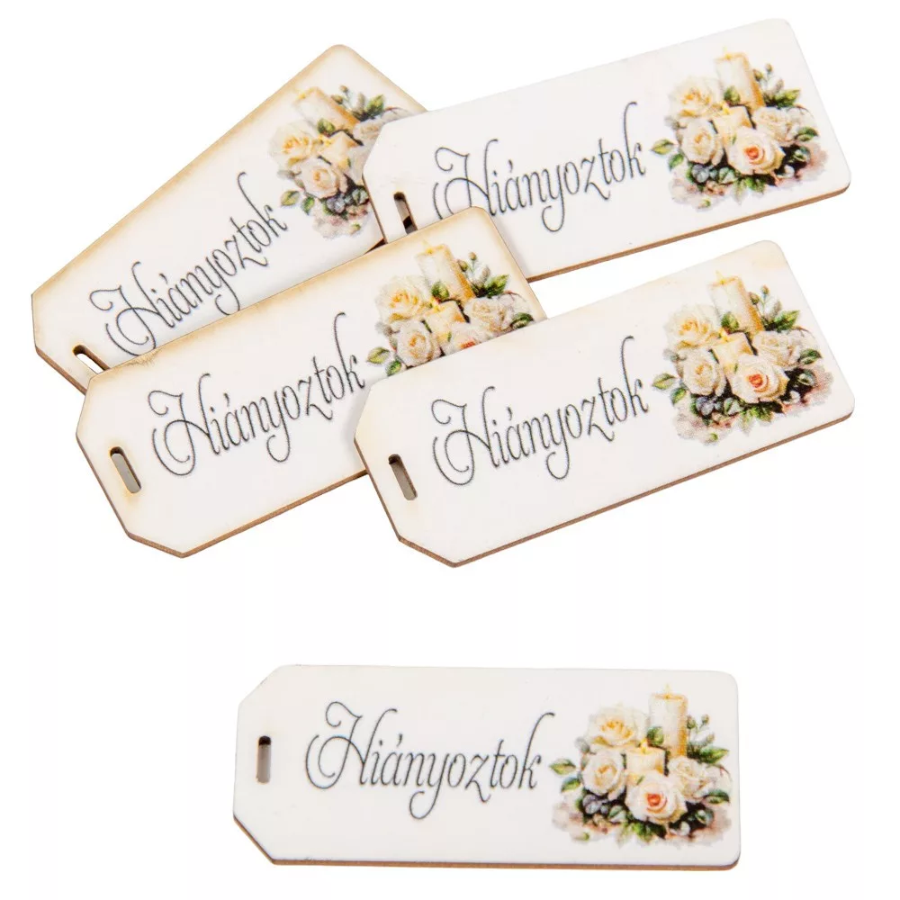 Nyomtatott scrapbook dekorkarton Hiányoztok felirattal 5,5cm 5db-os