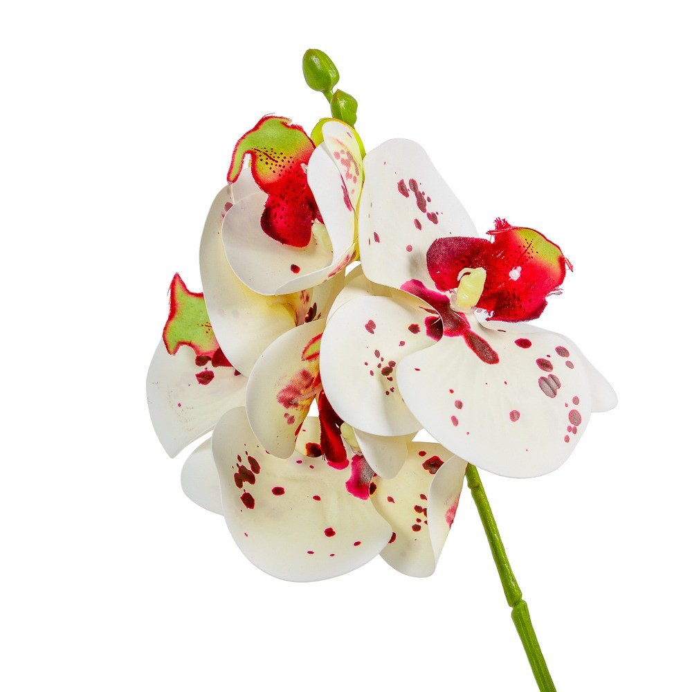 Orchidea ág levéllel gumi fehér-rózsaszín 48cm
