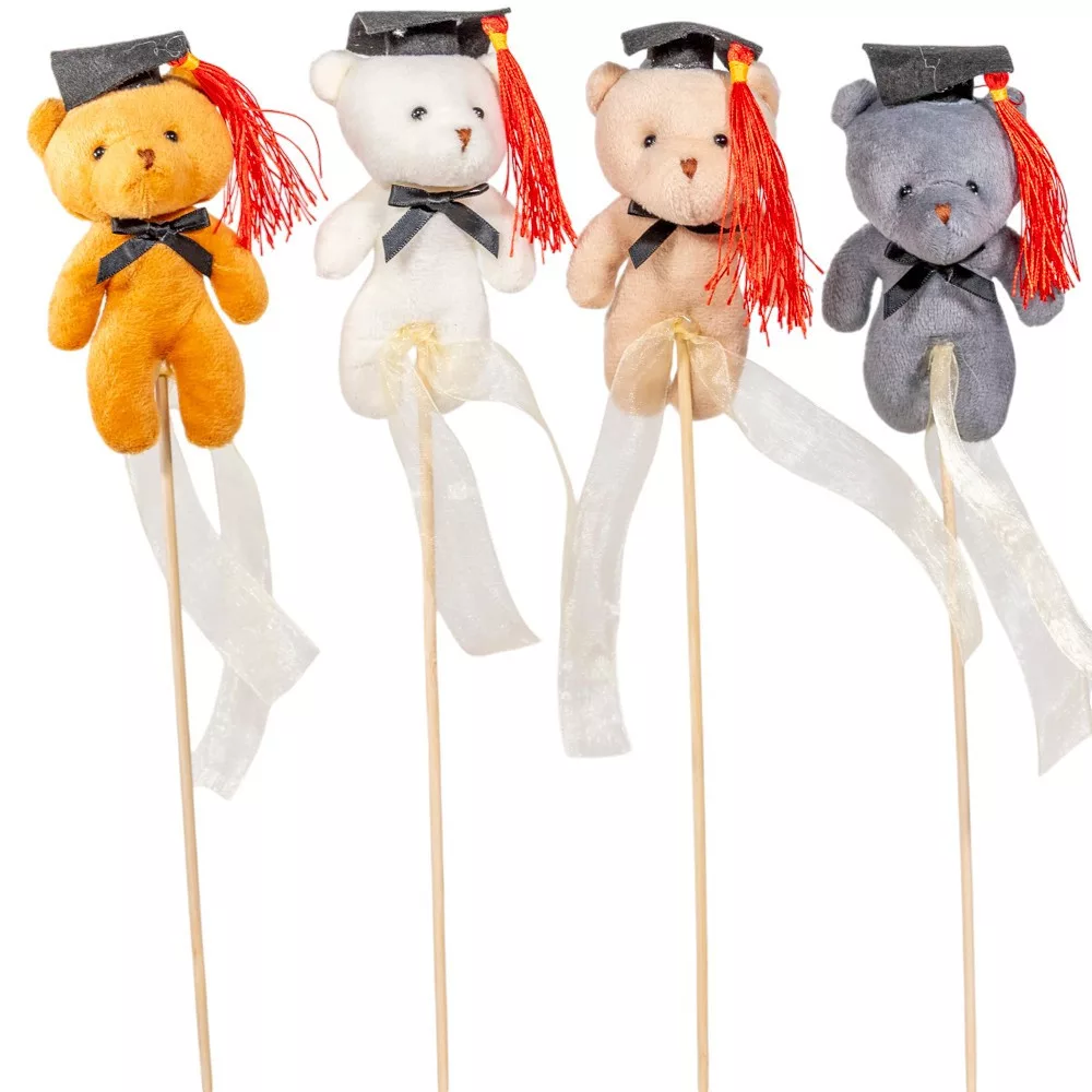 Pálcás ballagó betűző plüss kalapos maci