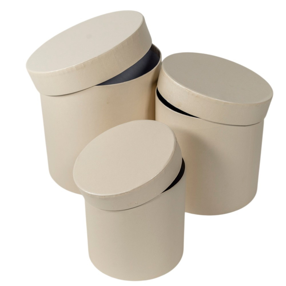 Papír doboz magas kerek gyöngyház krém D17,5-15-12,5cm 3db-os