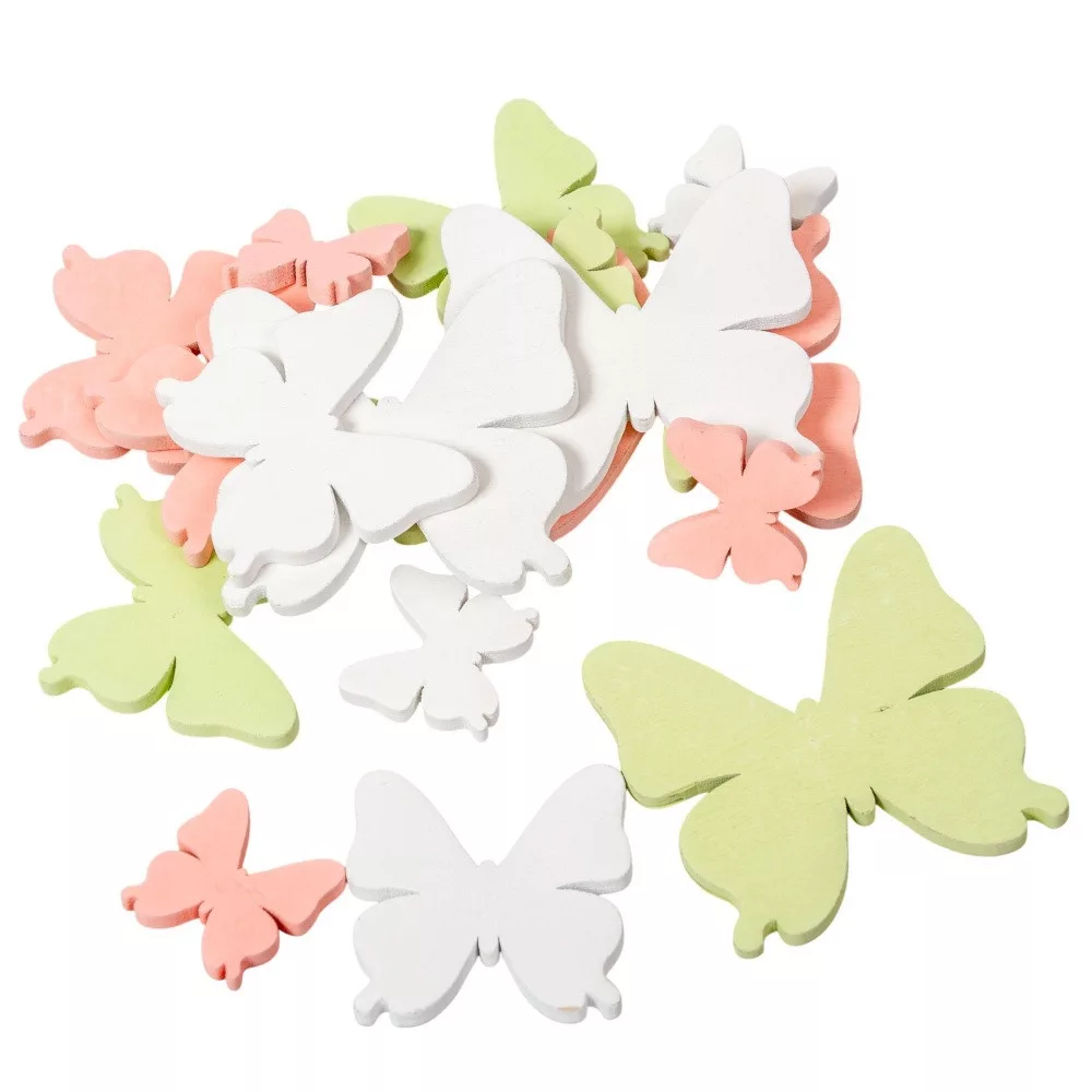 Pillangó fa rózsaszín-fehér-zöld 3-5-7cm 18db-os