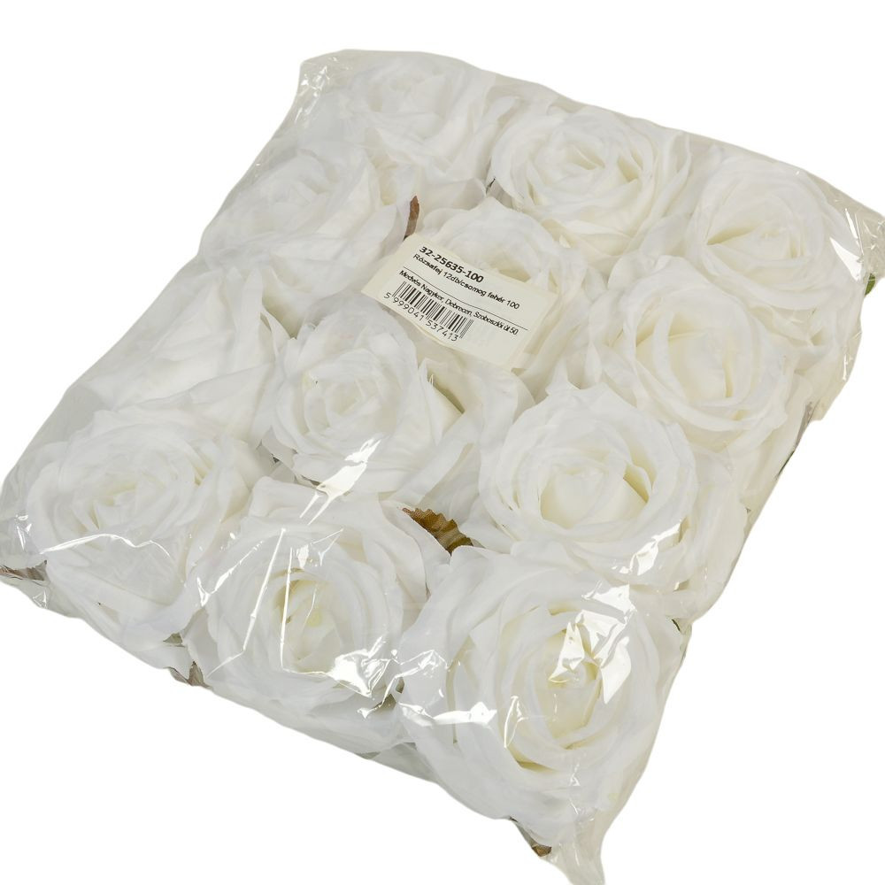 Rózsa virágfej D9cm 12db/csom fehér 100