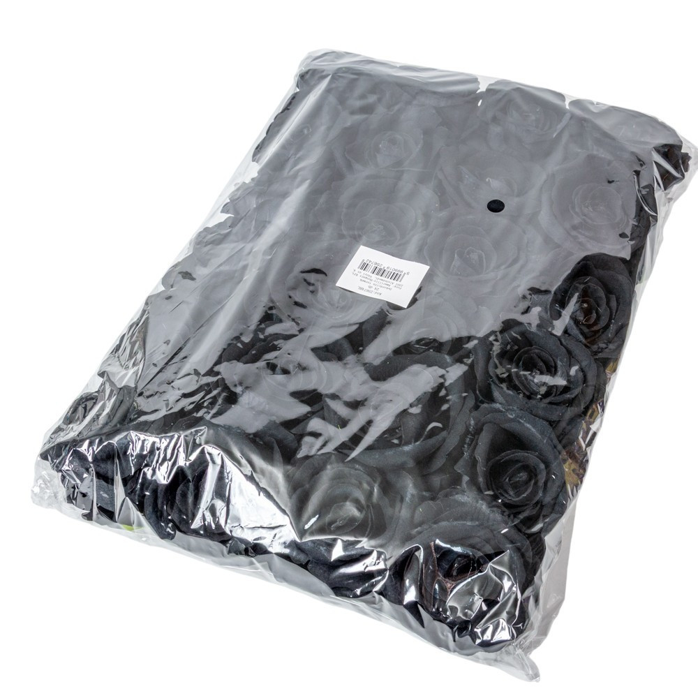 Rózsa virágfej bársony fekete D8cm 24db/csom