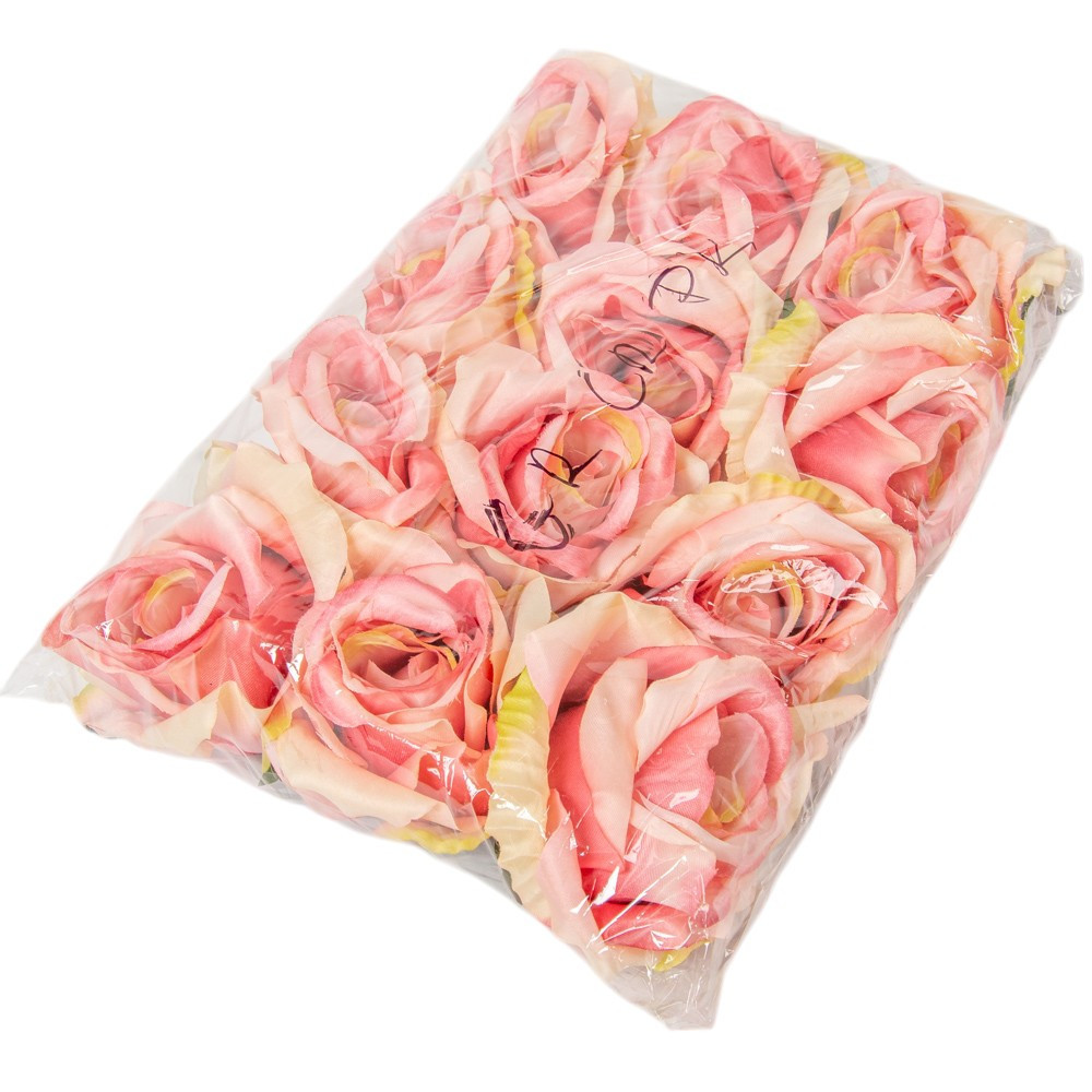 Rózsa virágfej krém-pink D9cm 12db/csom