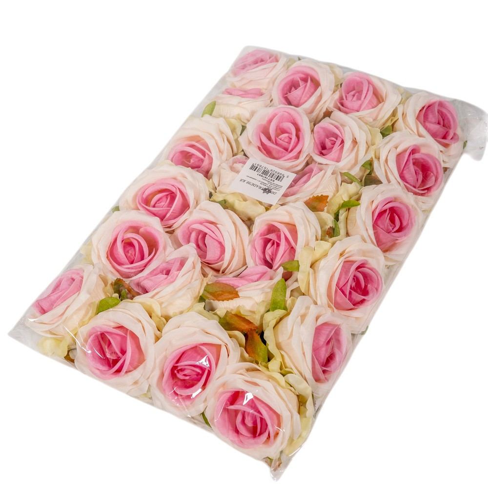 Rózsa virágfej krém-rózsaszín D7cm 24db/csom