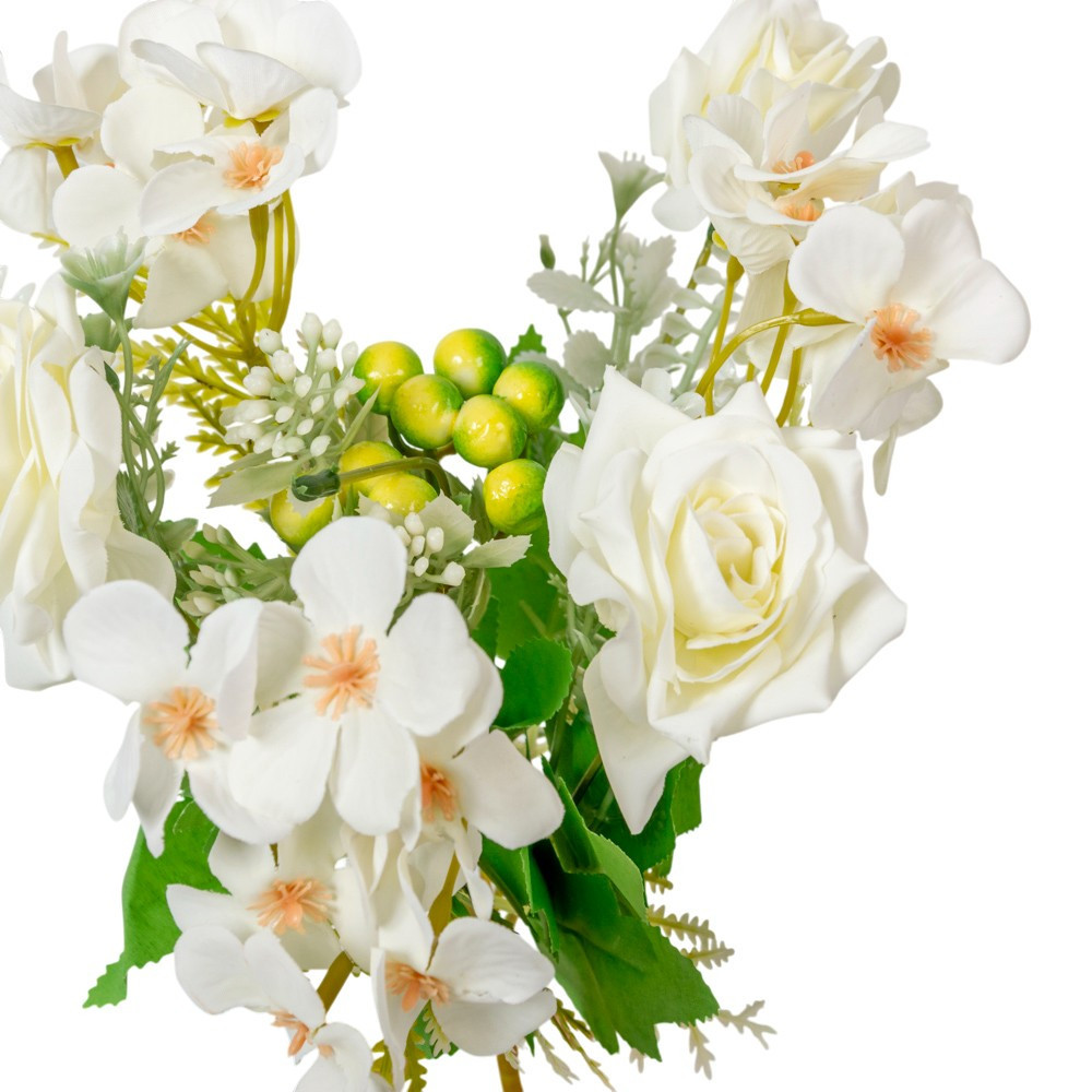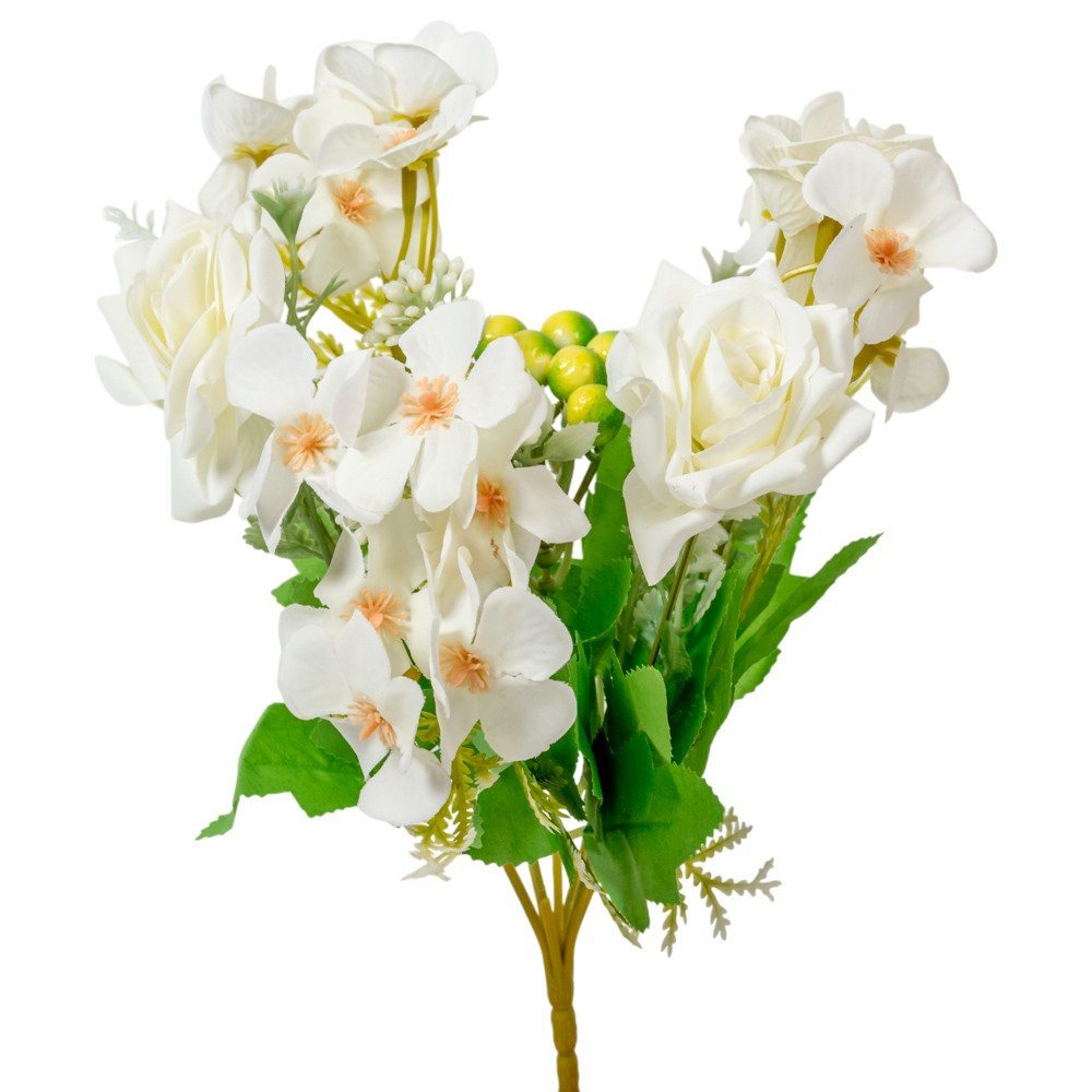Rózsa,minivirág csokor 7v. krém M28cm 48db/#