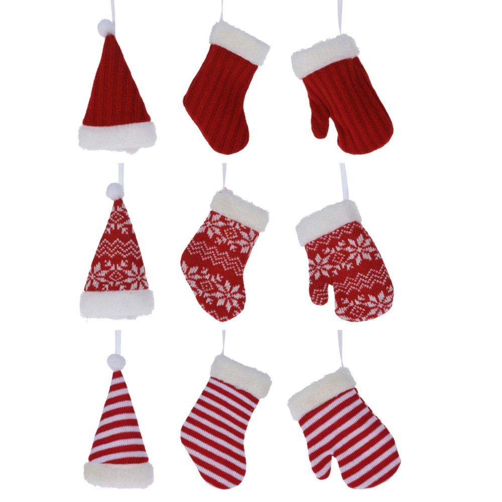 Sapi-kesztyű-csizma akasztós  piros-fehér textil 15cm