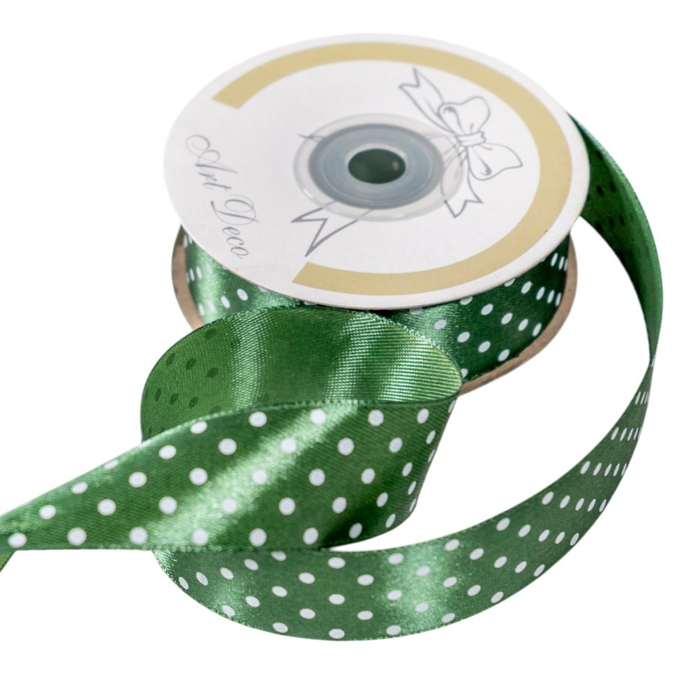 Szatén szalag pöttyös olajzöld 25mmx25m