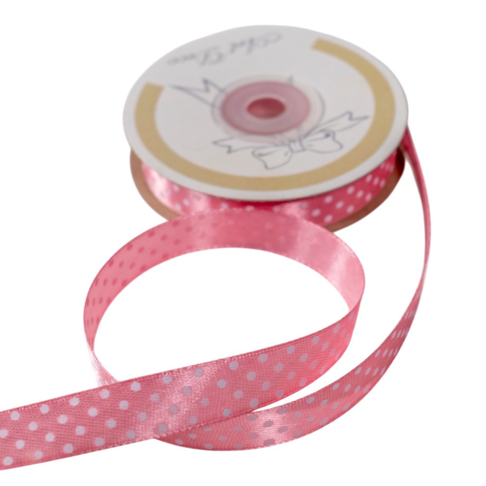 Szatén szalag pöttyös rózsaszín 15mmx25m